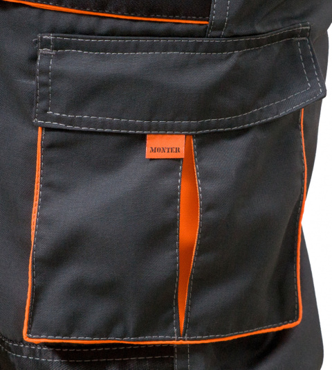 Spodnie robocze do pasa MONTER rozm. 6XL (64 / 200 cm) - pomarańczowe wstawki
