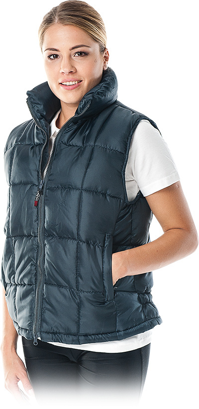 Bezrękawnik ocieplany wykonany z tkaniny poliestrowej. - powłoka 100% poliester - wyściółka 100% poliester typu tafta 190T - podszewka 100% poliester o gramaturze 300 g/m2 - zapinany na suwak - pikowany w dużą kratę - dwie boczne kieszenie zapinane