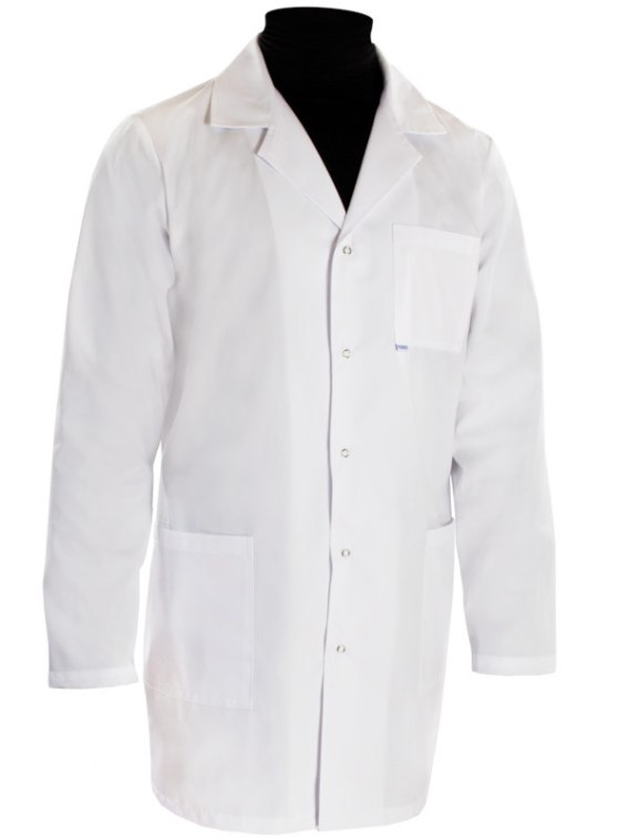 Skład tkaniny : 65 % Poliester, 35 % Bawełna 180-205 gsm. Fartuch zapinany na guziki (lub zatrzaski + 3 zł ). Rękawy z mankietami , długość fartucha - przed kolana. Dwie kieszenie dolne jedna mała na lewej piersi, rękaw długi .Góra zakończona kołnierzem