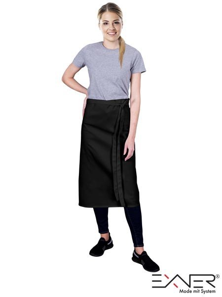 Fartuch typu zapaska wykonany z wysokiej jakości materiału (65% poliester, 35% bawełna) o gramaturze 220 g/m2. Wiązany za pomocą pasków, łatwy w utrzymaniu i wygodny w noszeniu. Idealny dla przemysłu gastronomicznego, służby zdrowia i lecznictwa.