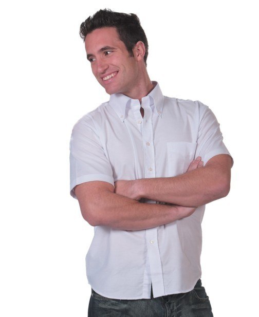 Koszula z krótkim rękawem. Kołnierzyk przypinany guzikami, kieszonka na lewej piersi. 60% bawełna - 40% poliester.