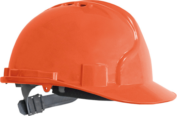 Hełm ochronny wykonany z tworzywa ABS. - regulacja w obwodzie pasa głównego w zakresie 52-62 cm, dająca możliwość dopasowania hełmu do głowy - skorupa wyposażona w daszek - 4-punktowa więźba tekstylna posiada sześcioramienne pasy nośne - w części prze