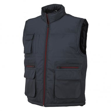 Kamizelka z wieloma kieszeniami (2 z przodu, 2 ukryte kieszenie na zamek, 1 na telefon komórkowy i 2 na długopis). Wysoka wodoodporność. Idealna do umieszczania nadruków.