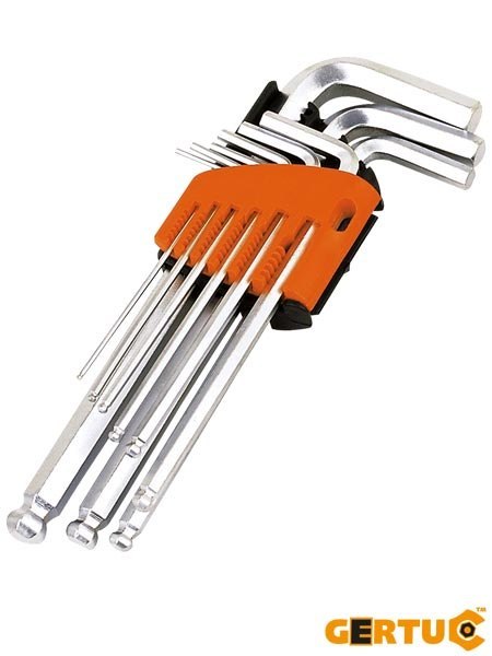 Klucze Imbusowe z Kulistymi Końcówkami – Zestaw 9 szt. ze Stali CR-V GERTU