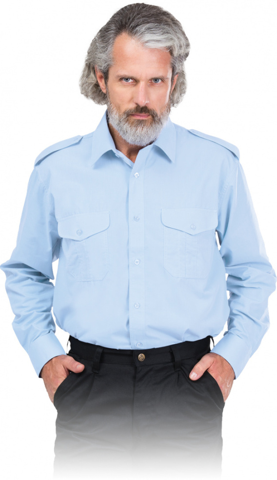 Koszula długi rękaw z pagonami rozm. M jasnoniebieska Reis