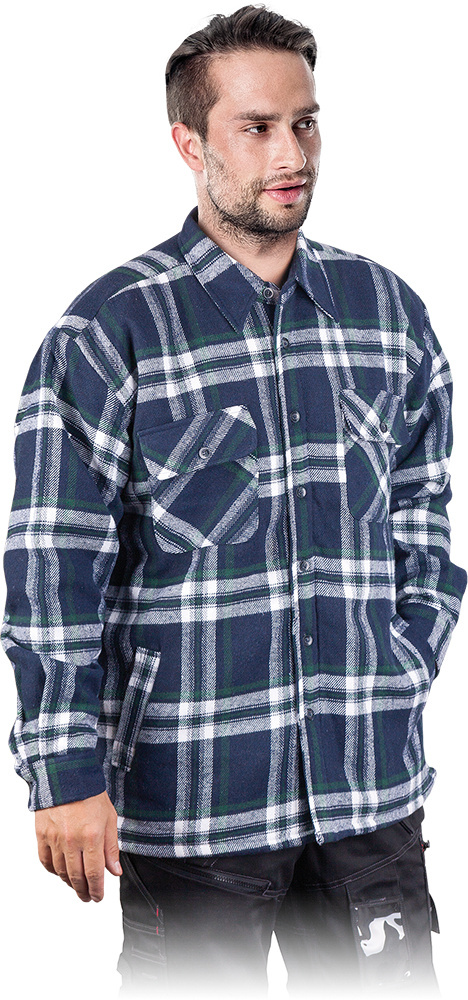 Koszula ocieplana grubym kożuszkiem, dzięki czemu można w niej chodzić również wczesną zimą. powłoka 100% przędza akrylowa o gramaturze 205 g/m2 wyściółka 100% poliester o gramaturze 286 g/m2 zapinana na guziki cztery kieszenie, w ty