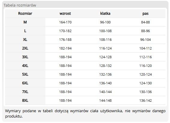 Dolna część oraz rękawy to 100% poliester typu tafta 210T o gramaturze 50 g/m², co ułatwia zakładanie i zwiększa swobodę ruchów.