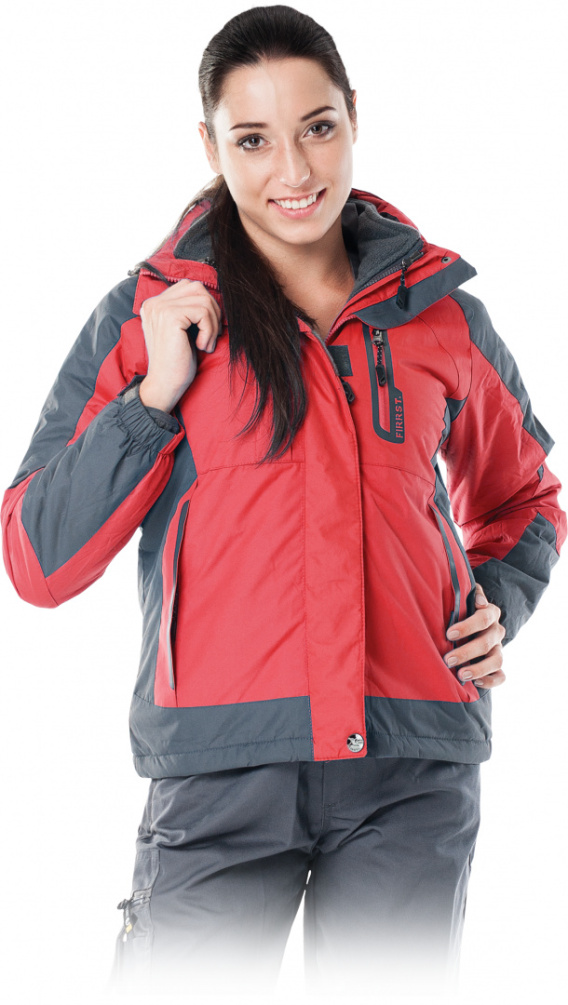 Kurtka ocieplana damska z odsuwaną podpinką. - powłoka 100% poliester typu pongee powlekany PCV o gramaturze 161 g/m2 - wyściółka 100% poliester o gramaturze 211 g/szt. - podszewka 100% poliester 210To gramaturze 47 g/m2 - odsuwany kaptur ściągany na