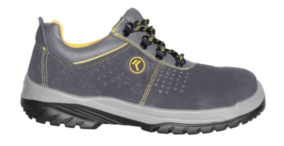 Półbuty ochronne. Cholewa z perforowanej skóry zamszowej. Antypoślizgowa, dwuwarstwowa podeszwa z PU o różnych gęstościach. Wyściełany język dla lepszego komfortu. Przednia część cholewy bezszwowa zmniejsza ryzyko rozdarcia i gwarantuje większą wytrzymałość.