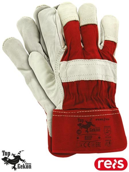 Rękawice ochronne wzmacniane skórą bydlęcą.