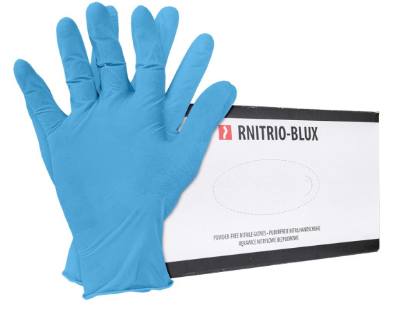 Rękawice nitrylowe bezpudrowe z teksturowaną częścią chwytną, idelane do pielęgnacji urody lub gospodarstw domowych.