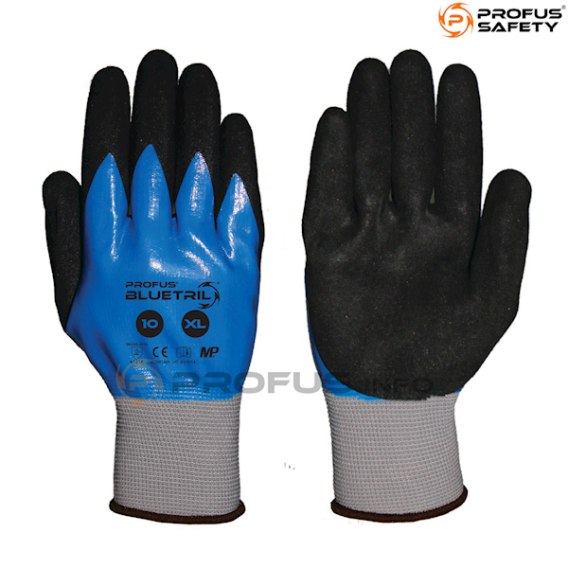 Rękawice ochronne BLUETRIL * Materiał rękawicy: nylon * Materiał powleczenia: oddychający nitryl, dodatkowe oblanie dłoni drygą warstwą szorstkowatego nitrylu * Zakończone elastycznym ściągaczem * Rozmiar: 7" (S) - 11" (XXL) * Znak CE kateg