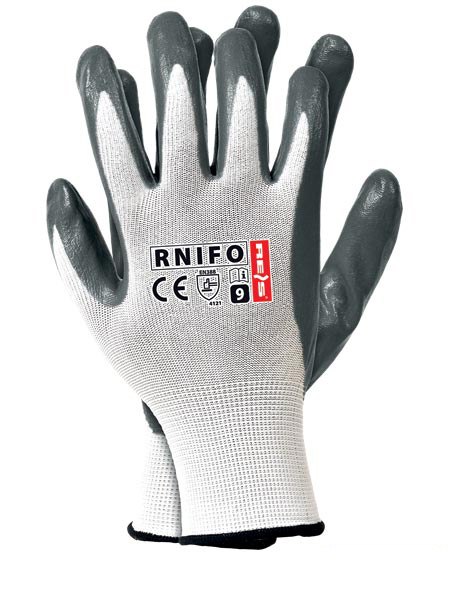 Rękawice ochronne wykonane z nylonu, powlekane spienianym nitrylem zakończone ściągaczem.
