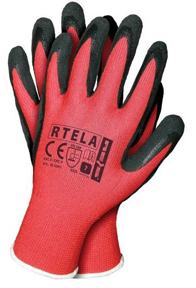 Rękawice ochronne wykonane z poliestru (ścieg 13), powlekane lateksem.