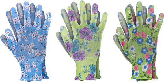 Rękawice dziane powlekane poliuretanem z pieknym kwiecistym wzorem. Polecane szczególnie do pracy w ogrodzie.