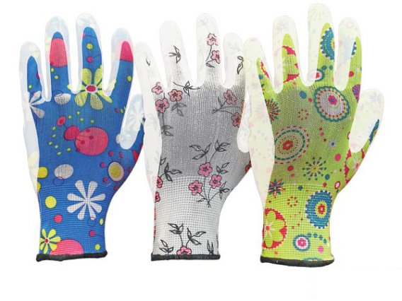 Rękawice ochronne kolorowe, dedykowane do wszelkich prac w ogrodzie, wykonane z poliestru powlekane poliuretanem.