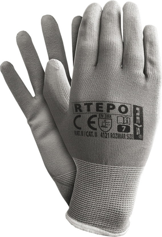 Rękawice ochronne wykonane z poliestru, powlekane poliuretanem odporne na ścieranie i rozdarcia.