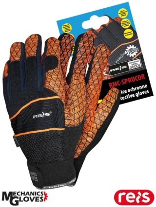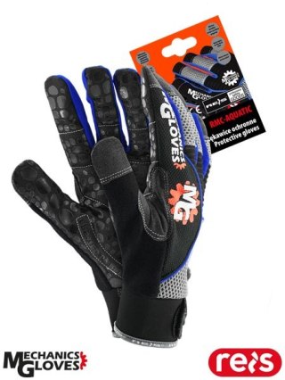 Wyposażone w specjalne materiały i tekstury na dłoniach, zapewniające pewny chwyt nawet w mokrych lub zaolejonych warunkach.