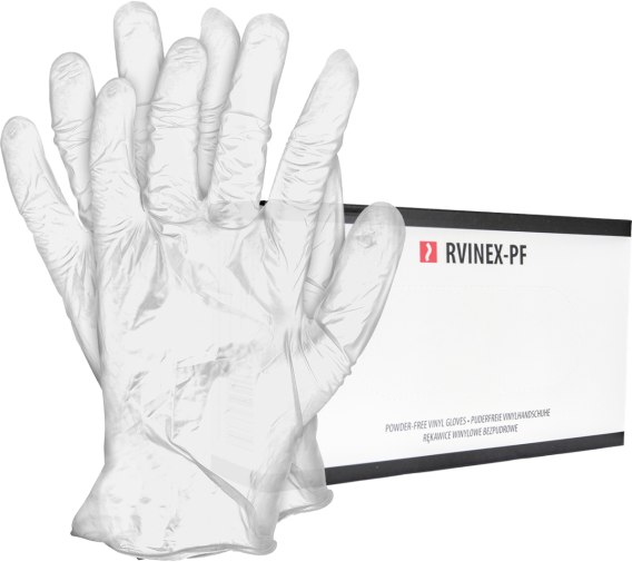 Rękawice wykonan z winylu - bezpudrowe, idealne do skomplikowanych prac manipulacyjnych. Zgodne z normą EN ISO 21420.