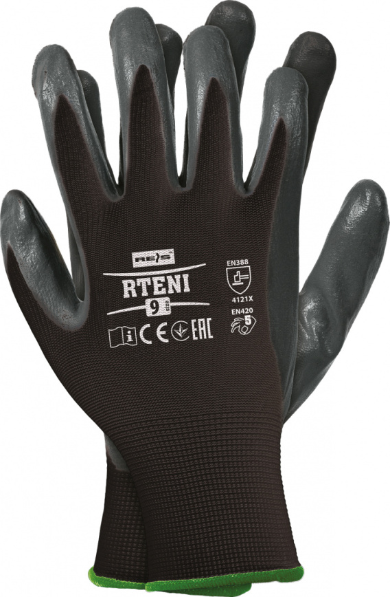 Rękawice ochronne wykonane z poliestru (ścieg 13), powlekane nitrylem typu smooth.