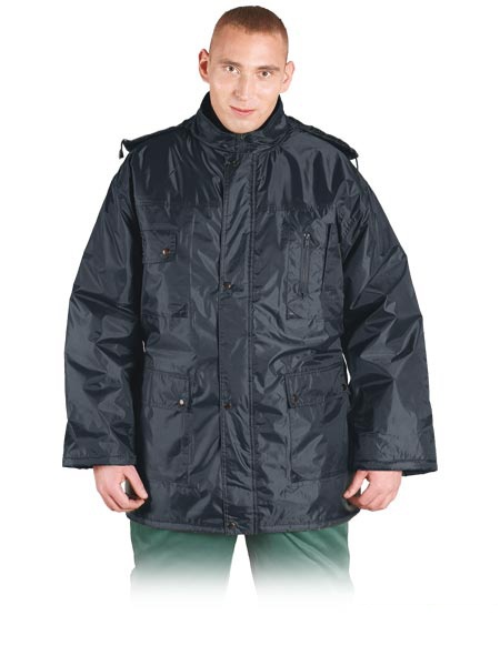 Kurtka ocieplana, przedłużana. - powłoka 100% poliester na PCV - wyściółka 100% poliester o gramaturze 160 g/m2 - podszewka 190T poliester tafta - zapinana na suwak z dodatkowym zapięciem na napy - kaptur zapinany na suwak - po zewnętrznej stronie p