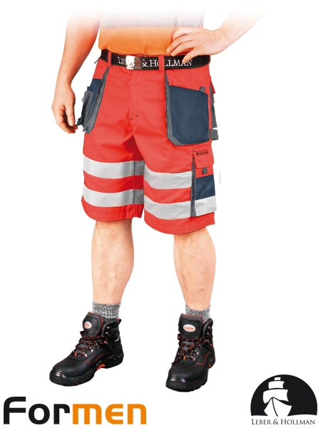 Spodnie ochronne do pasa FORMEN z krótkimi nogawkami. 80% poliester, 20% bawełna (kolor CSB: 100% poliester) gramatura 270 g/m2 dwie kieszenie z tyłu na rzepy oraz dwie boczne podwójne, w tym jedna z kieszonką na telefon jedna kiesze