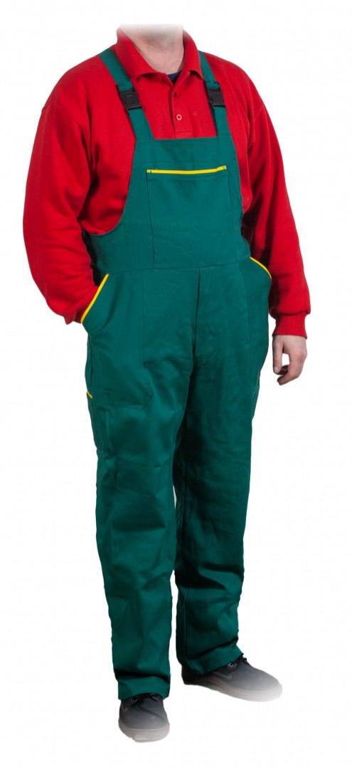 Spodnie ogrodniczki zielone z lamówka 172/100