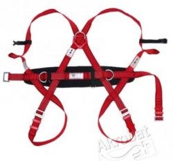 Szelki bezpieczeństwa z przednim i tylnym punktem kotwiczącym oraz dwoma na pasie mocującym. Regulacja pasów udowych umożliwiająca proste dopasowanie do sylwetki.