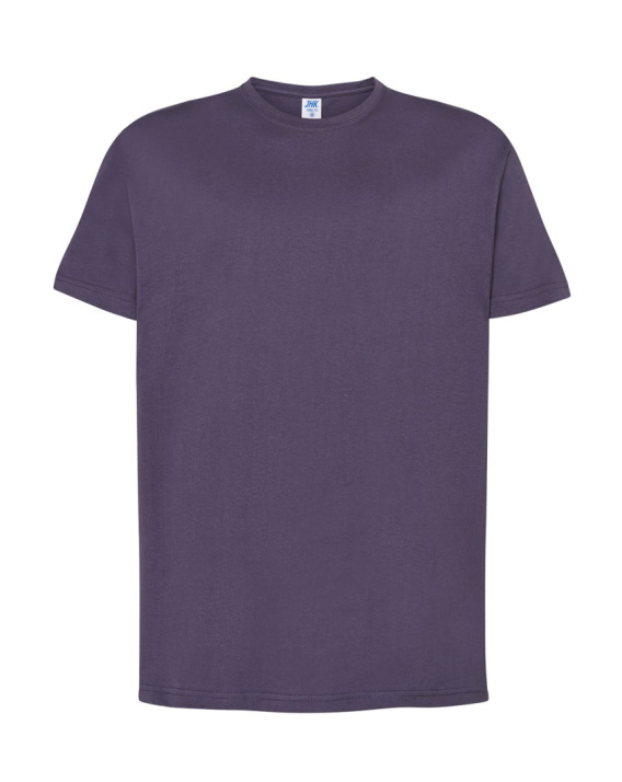 T-shirt męski z krótkim rękawem. Brak bocznych szwów. Podwójne szwy na ramionach. Wzmocniony lycrą ściągacz. Taśma wzmacniająca. 100% bawełna stabilizowana.