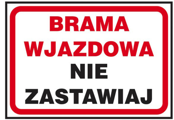 Tablica PCV "Brama wjazdowa nie zastawiaj" 250 x 350 mm