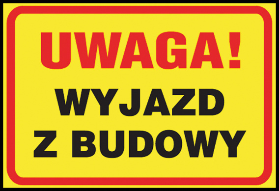 Tablica PCV "Uwaga! Wyjazd z budowy" 250 x 350 mm