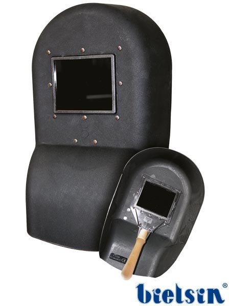Tarcza spawalnicza do trzymania w ręku z rączką z twardego drewna. Wykonana z polipropylenu z dodatkiem uniepalniacza, wyposażona w filtr ochronny 10-11 DIN i szybkę o wymiarach 90x110 mm.