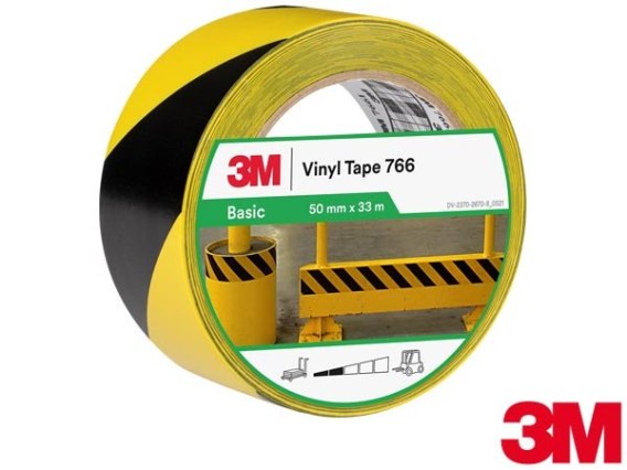Uniwersalna taśma ostrzegawcza 3M 766 o długości 33 m i szerokości 50 mm. Dzięki klejowi z naturalnego kauczuku doskonale nadaje się do wyznaczania stref bezpieczeństwa i znakowania zagrożeń. Rozciąga się i dopasowuje do zakrzywionych powierzchni.