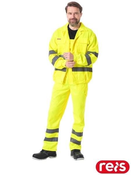 Ubranie ostrzegawcze klasa 3 – bluza i spodnie ogrodniczki EN ISO 20471 dla drogowców i służb porządkowych REIS
