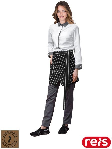 Zapaska ochronna z mieszanki poliestru i wiskozy (210 g/m²). Posiada jedną kieszeń, pasek wiązany z tyłu i niewielkie rozcięcie na dole. Idealna do pracy, łatwa w pielęgnacji. Można prać w 60 ∘C.