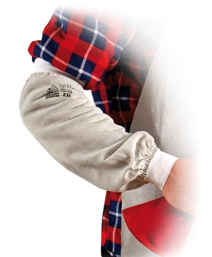 Zarękawnik skórzany. wykonany ze skóry bydlęcej dwoinowej zakończony z dwóch stron ściągaczami spełnia wymagania norm EN11611 i EN13688